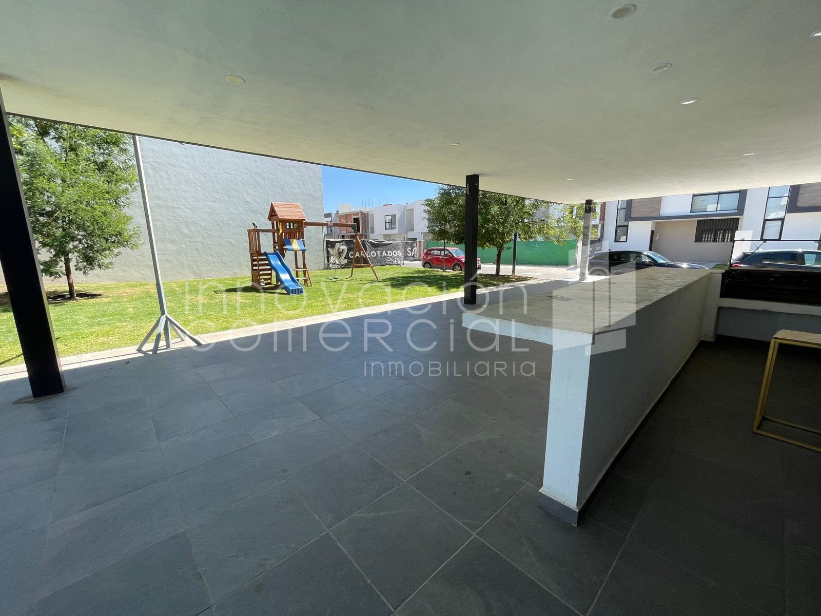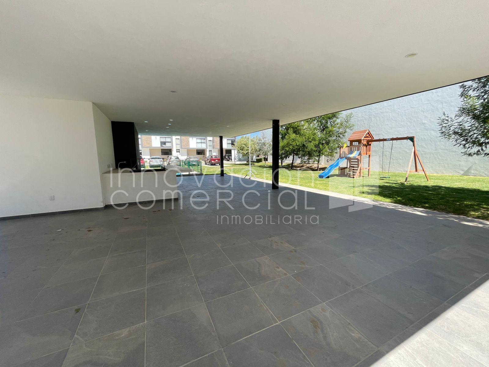 La privada cuenta con área común: alberca, terraza, jardín con juegos infantiles .