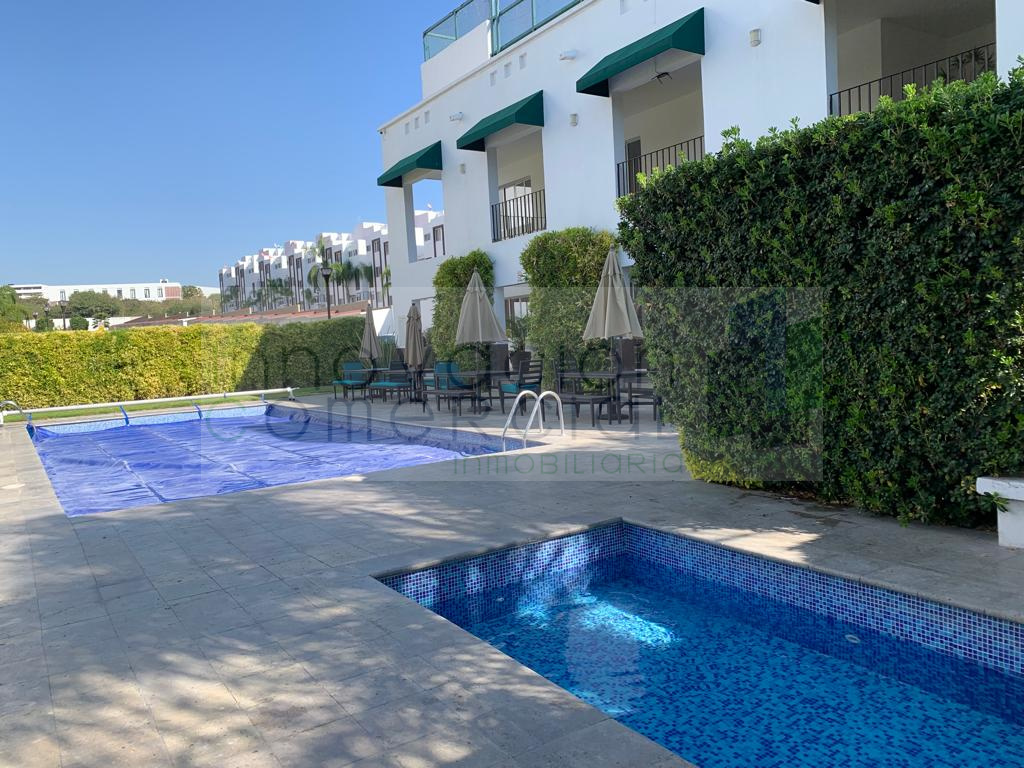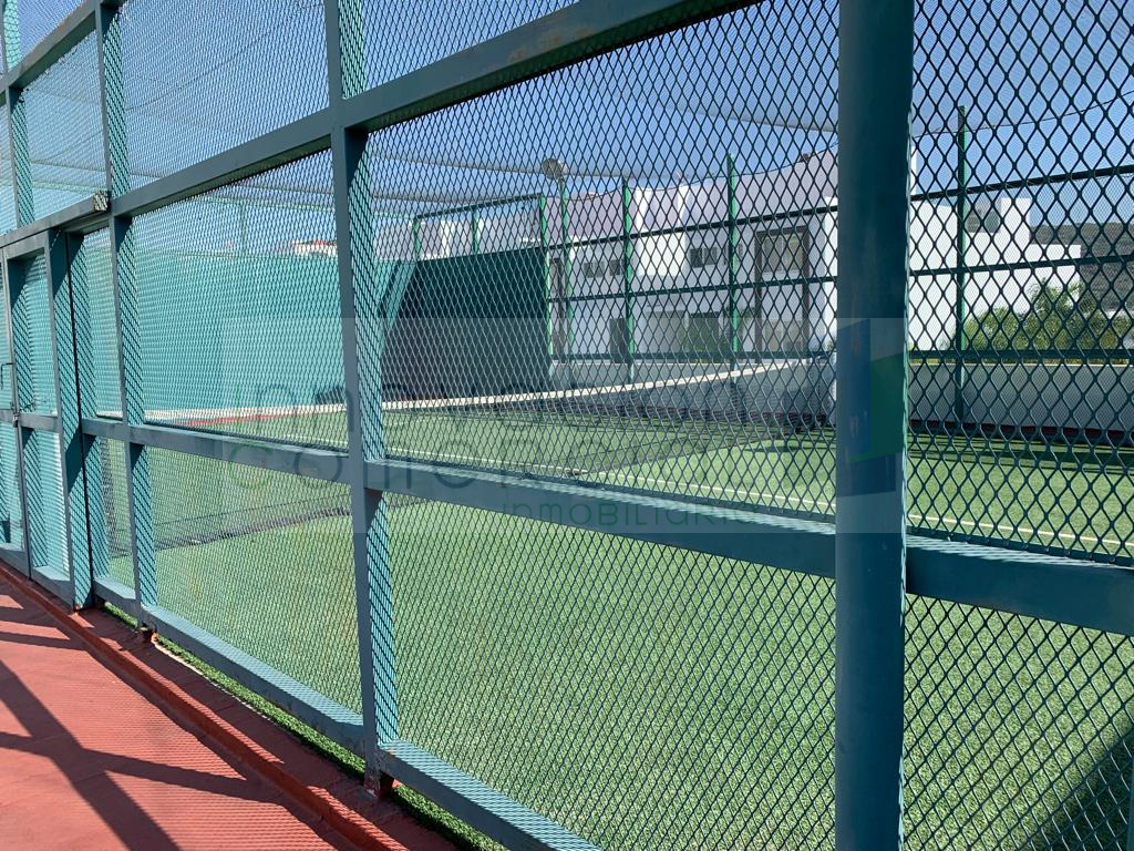 Alberca, gimnasio, cancha de padel, salón de usos múltiples, área de asador, áreas verdes, vigilancia 24/7 con acceso controlado.